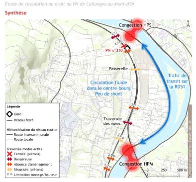Level crossing No. 310 is a critical node For the town of Collonges-au-Mont-d'Or, due to its role as the main crossing of the railway line.