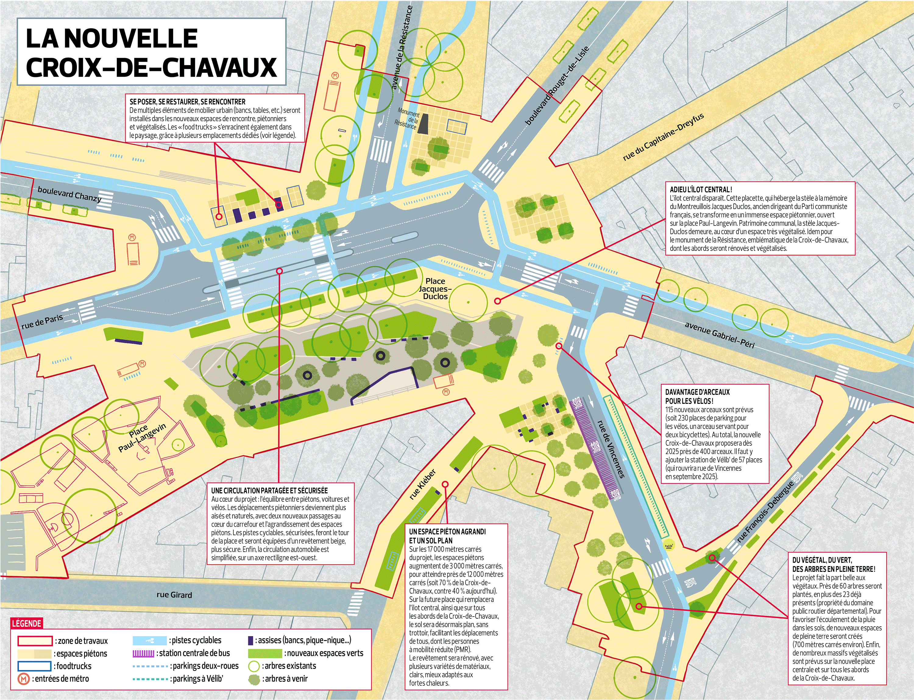 The Place de la Croix de Chavaux embodies the ambition to create public spaces at the same time user-friendly, accessible and efficient, in a logic of sustainable mobility and urban quality.